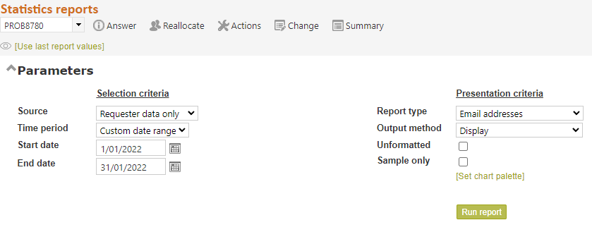 When displayed, this report shows the email addresses and the number of requests from each during the selected period.